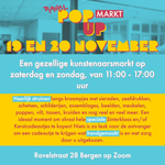 - Kunstmarkt met 19 kunstenaars , hun werk. Diverse disciplines: beeld, schilderijen, grafiek, tassen, ijzerdraad