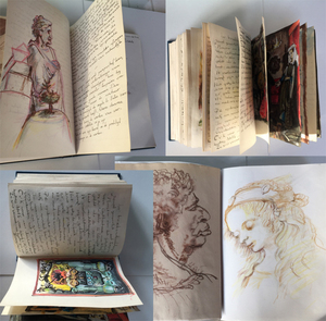 Bij de bestudering van de kunstgeschiedenis kreeg ik doordat ik een visueel geheugen heb de drang om de afgebeelde schilderijen na te schilderen of te tekenen. Om de schilders te doorgronden is woord alleen voor mij niet genoeg. Ik maak aantekeningen in boekjes en teken en schilder de beeldelementen. Zo wordt het opgeslagen in mijn brein. Daarnaast schilder ik op kaartformaat 15 x 10 cm in olieverf details of hele kunstwerken na. Dit proces vraagt een vrije manier. Het kleine formaat en het feit dat het een detail betreft vraagt om veranderingen naar compositie, kleur of beeld. De individuele werkjes hebben een omlijsting van golfkarton.