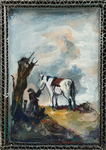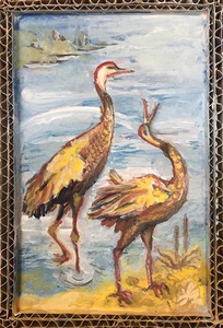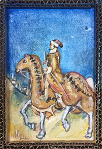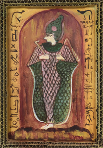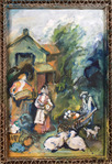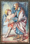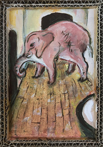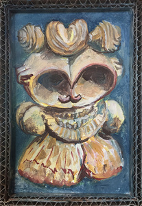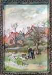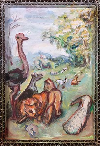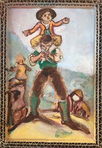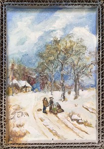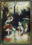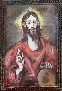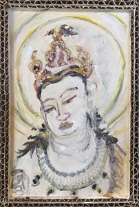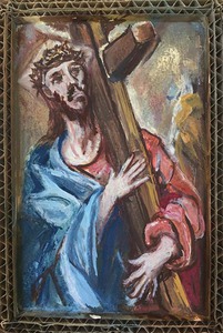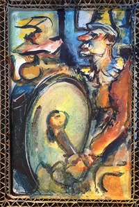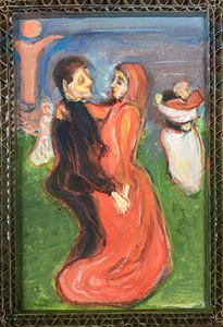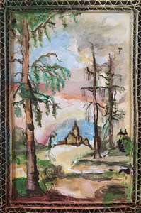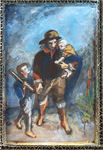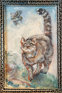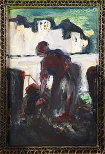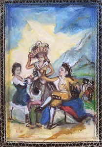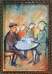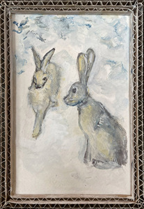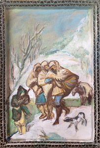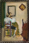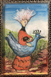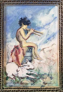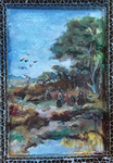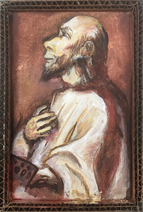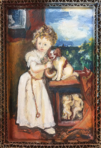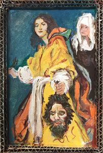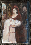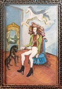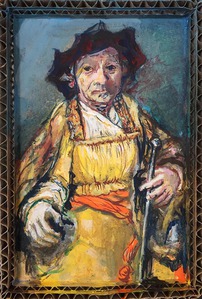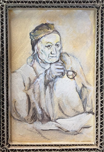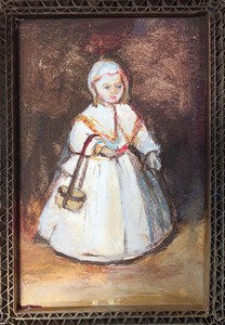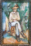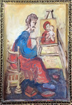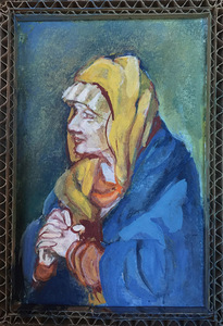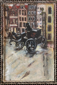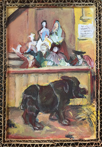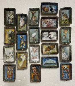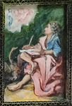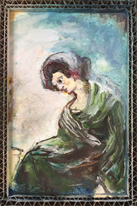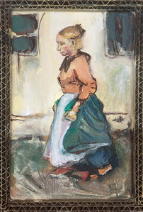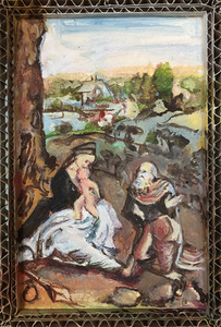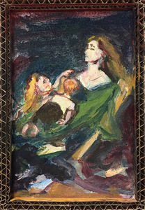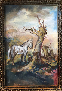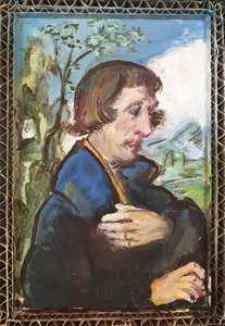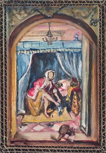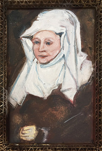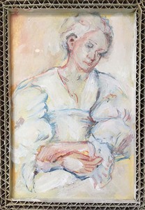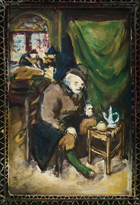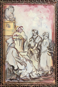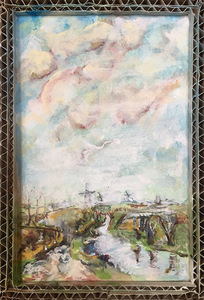 Bij bestudering van de kunstgeschiedenis schilder ik kunstwerken na op klein formaat 15x 10 cm. In olieverf, omgeven door een golfkartonrand. Formaat en detail vragen om een vrije impressie.