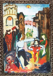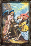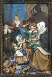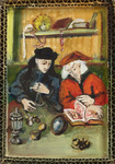 2017vrij naar Petrus Christus "Edelsmid, juwelier in zijn werkplaats met twee besoekers" 1449
