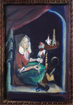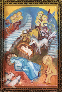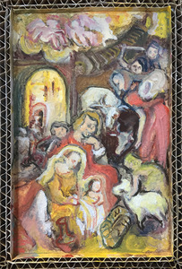 2017vrij naar Robert Campin "Geboorte van Christus" 1425