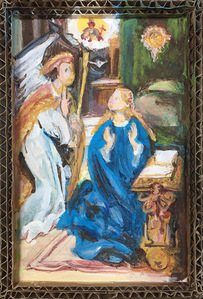 2017vrij naar Robert Campin "Merode altaar Annunciatie " 1425