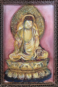 2021Vrij naar “Shaka-Triade” gouden hal van Honyuji tempel, Nara . Asuka periode ca 623