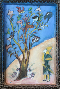 2017vrij naar Hugo van der Goes "Weens diptiek van de zondeval en de bewening" 1476- 1479