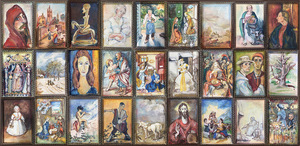 2021Installatie van impressies op miniatuur formaat van kunstwerken van mijzelf en mijn voorgangers in de kunst, De voorgangers zijn niet meer uitsluitend uit de westerse kunst, maar uit de gehele wereld.