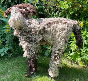 2022een schaap gemaakt van handmatig verwerkte wol ( kaarden en spinnen met spimtol) van een vocht van de schapen van Vosmaer