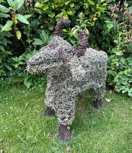 2022schaap gemaakt van gevlochten en gebreid gras en berkenhout